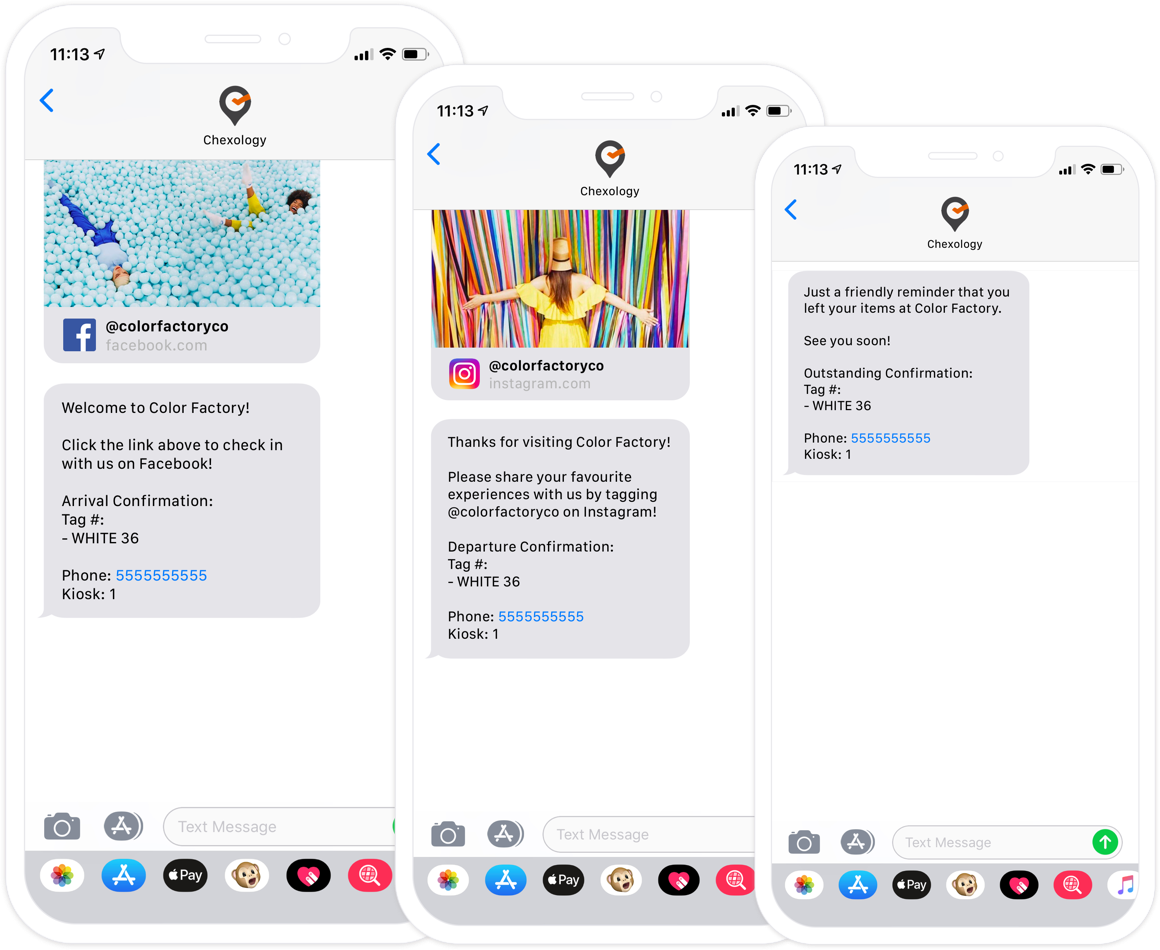 Send arrival and departure text messages with trackable links that direct customers to social sites, sign ups, and mobile apps